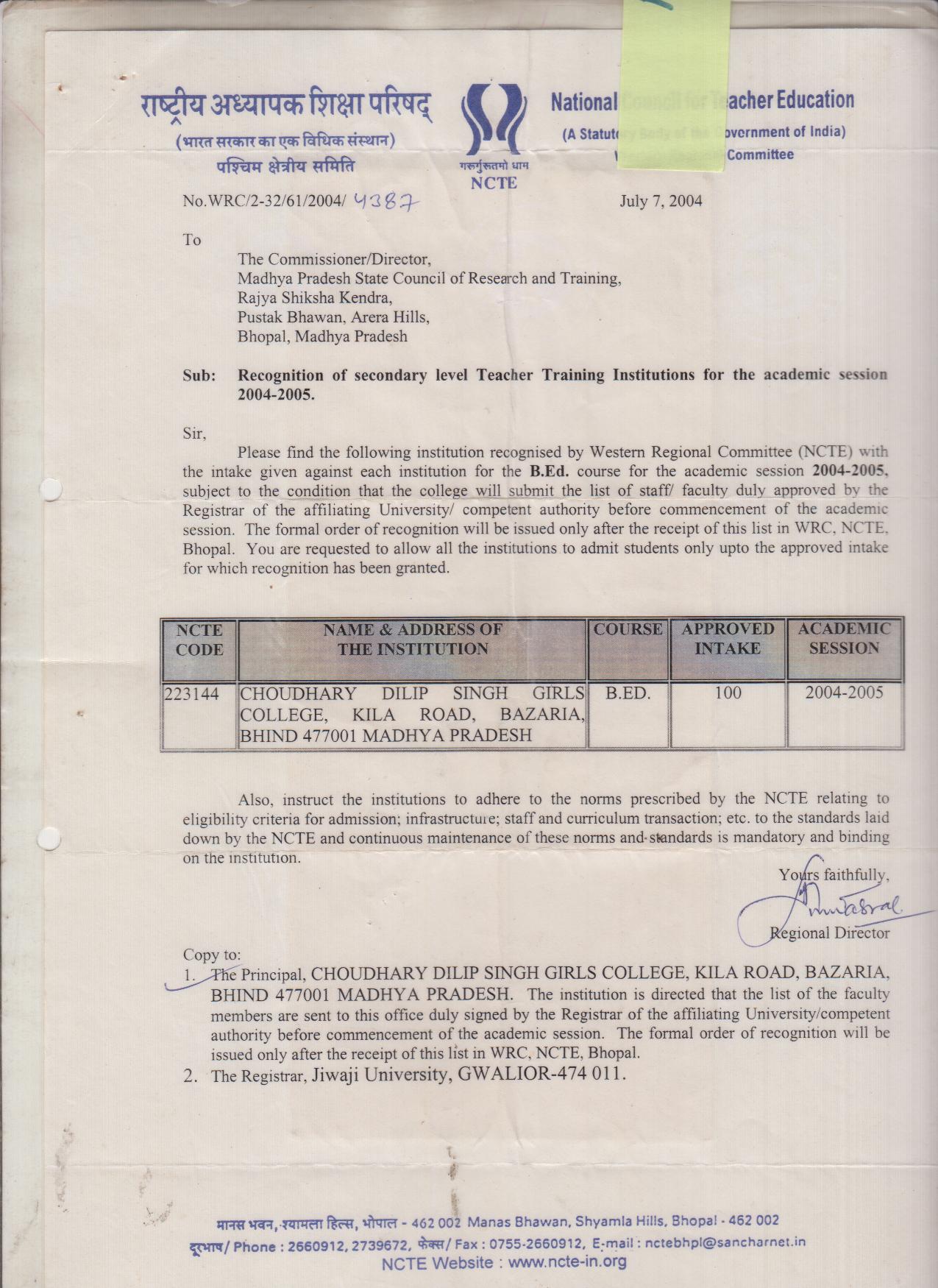Recognition Letter (B. Ed.) | WRC/2-32/61/2004/4387 | Click Here |