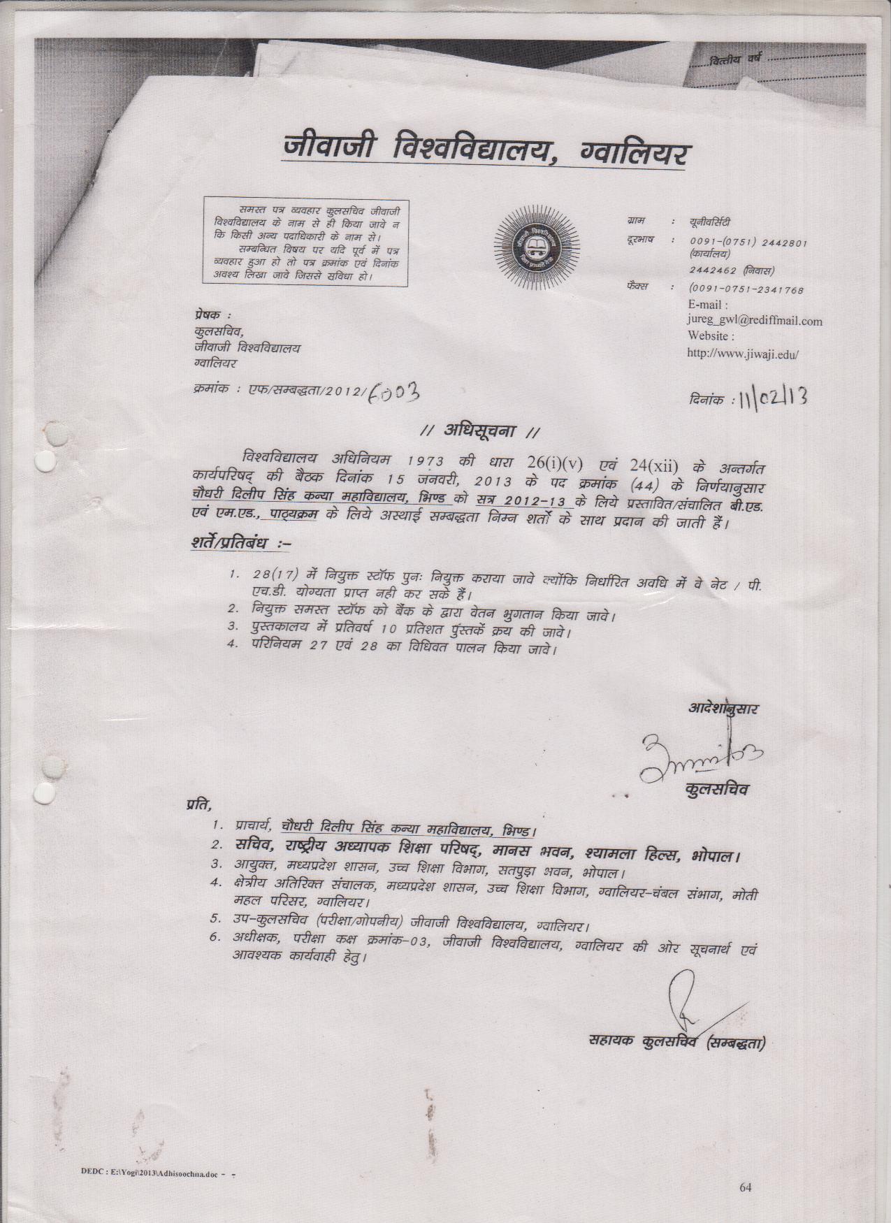 Affiliation Letter | F/संबद्धता/2012/6003 dated 11/02/13 | Click Here |
