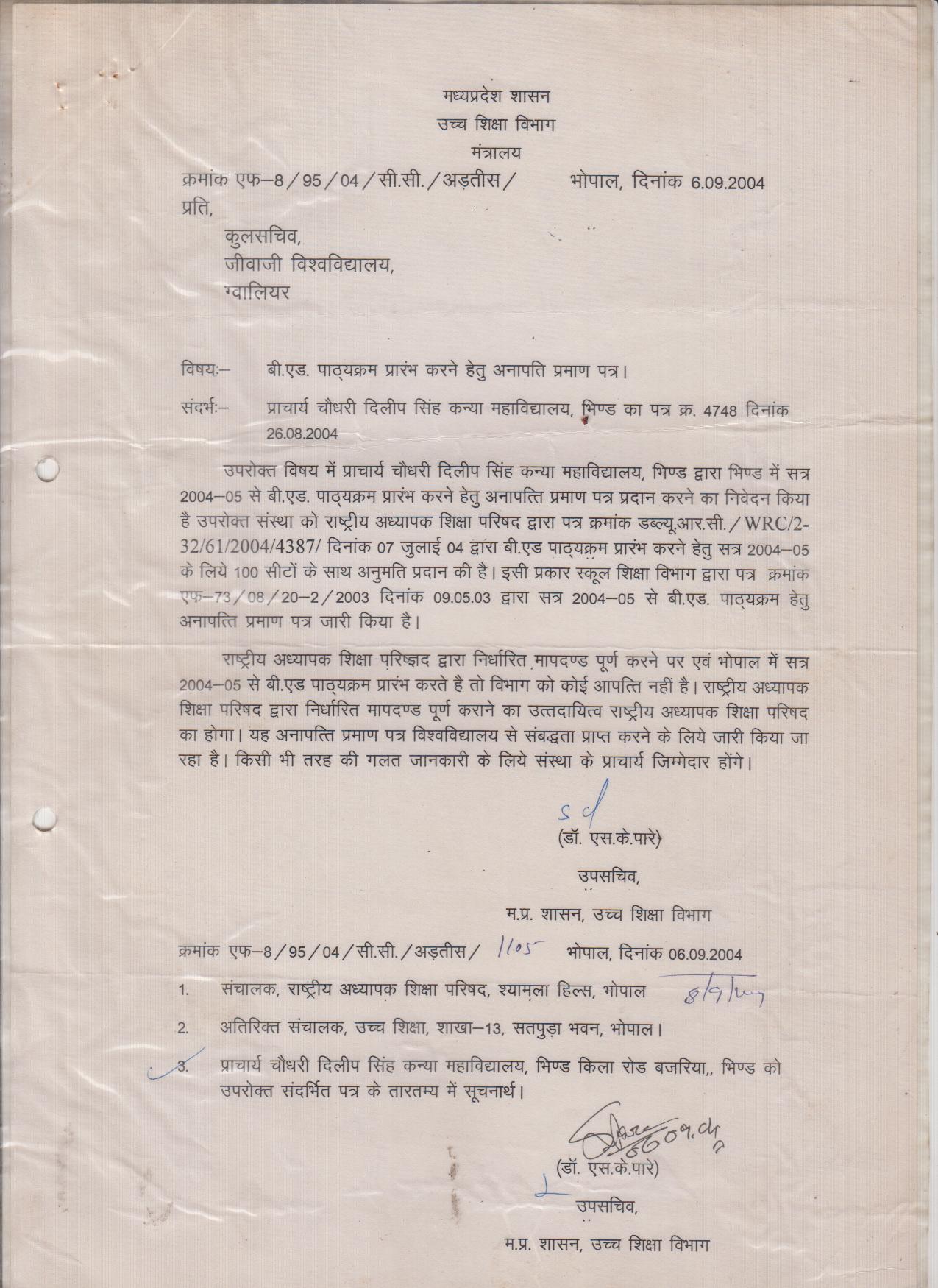 NOC Letter (B.Ed.) | No. F-8/95/04/CC/38 dated 06/09/2004 | Click Here |